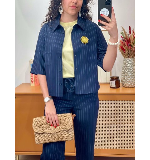 Misez sur l'élégance intemporelle avec ce pantalon CLAUDETTE bleu marine à fines rayures, doté d'une taille élastiquée confortable et d'un cordon...