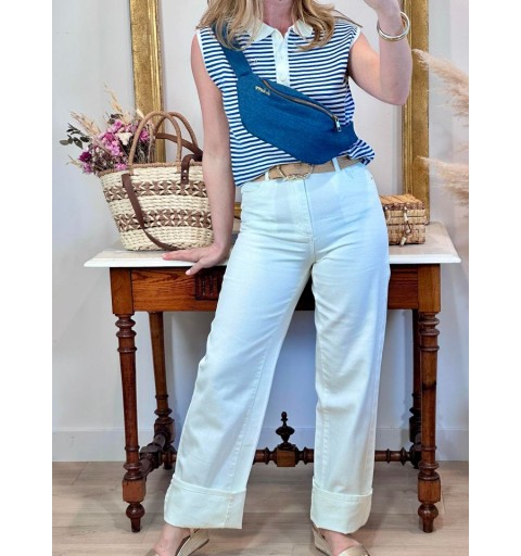 Le pantalon "BLUME" en toile écrue possède une coupe Straight c'est-à-dire une coupe droite des hanches jusqu'aux chevilles ainsi qu'une taille haute.