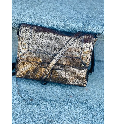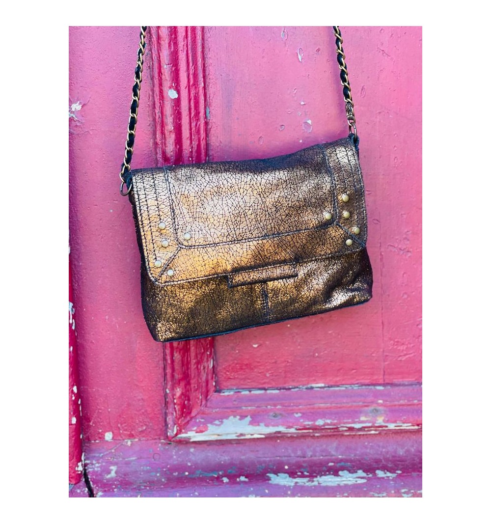 Sac en cuir, anse réglable chaînette et cuir. Petits clous sur le devant du sac.