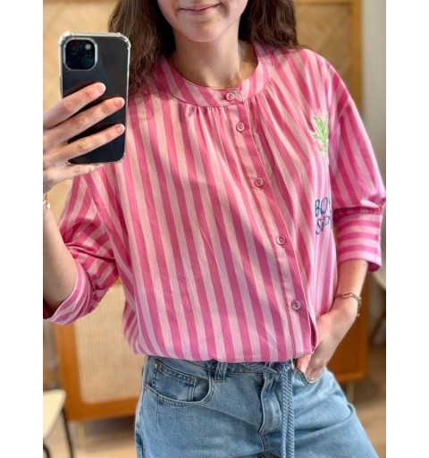 Chemise coupe ample, manches 3/4. A carreaux ou rayée, on adore sa broderie perlée qui nous inspire soleil et vacances..!