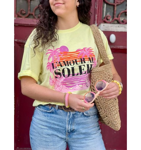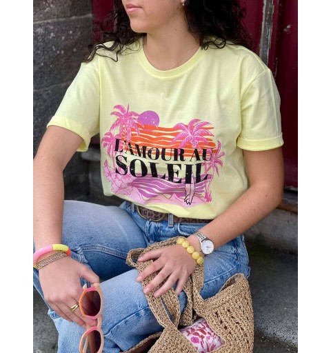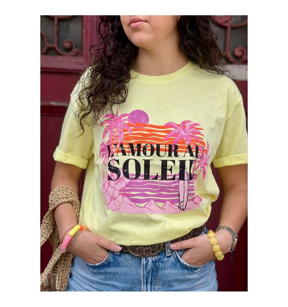 Coupe décontractée pour ce tee-shirt "L'AMOUR AU SOLEIL" au style vintage.
